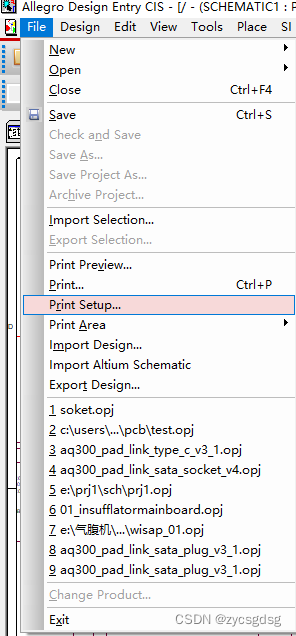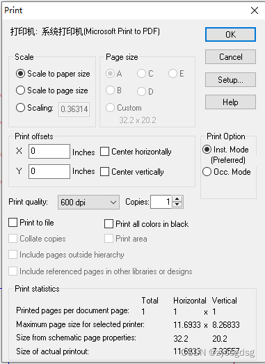 首先我们在打开原理图的情况下,点击File>Print Setup,在弹出的窗口中选择 Microsoft Prinit to PDF,下面还可以选择纸张大小(这里默认是A4),点击确定完成打印设置,这里其实我们并不是真的打印出纸张,而是用虚拟打印机生成PDF文件。