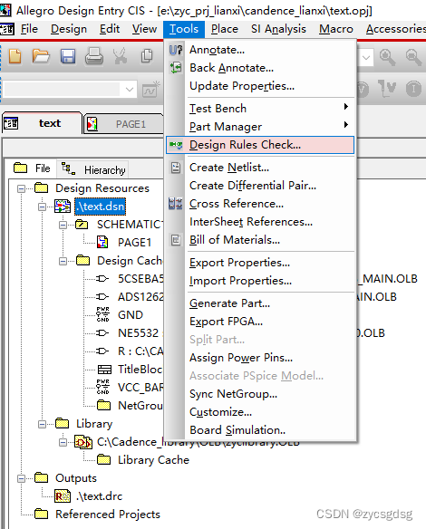 一般我们画好原理图之后是要进行DRC检查的,这样我们在导出网表之前就可以避免很多问题,检查的方法比较简单。