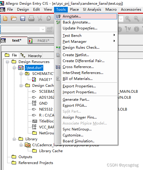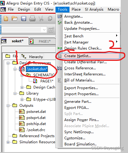 首先我们要选中我们的原理图文件(后缀为.dsn),然后选择 Tools >Create Netlist