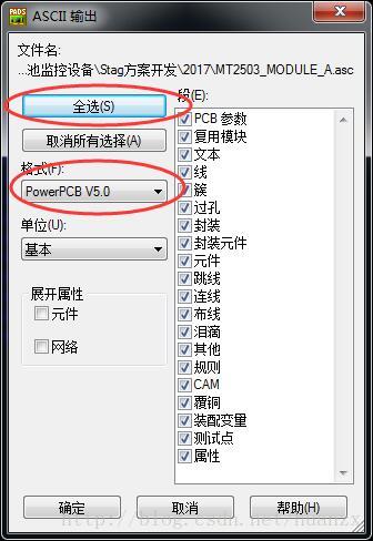 注意:导出段参数要选择全部,否则会丢失数据;版本选择PowerPCB 5.0以下版本,这样做兼容性好。