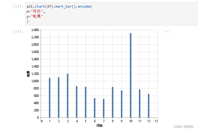 Chart 有三个基本方法:数据(data)、标记(mark)和编码(encode),使用它们的格式如下: