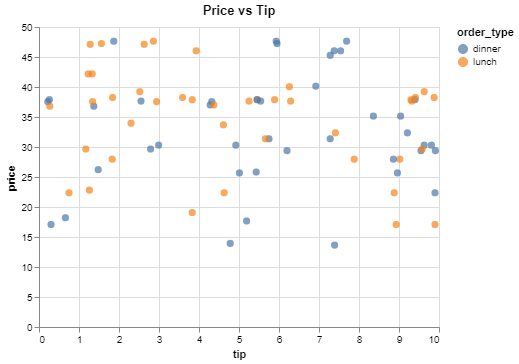 考虑这样一种情况,我们需要创建 pirce 和 tip 值的散点图,它们位于不同的数据帧中。一种选择是合并两个数据帧,并在散点图中使用这两列。