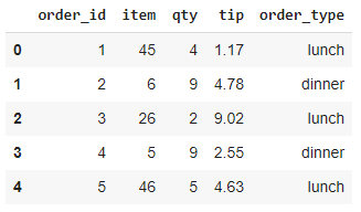 我们构建两个数据帧的模拟数据。第一个是餐厅订单,第二个是餐厅订单中的商品价格。