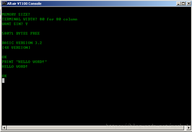 不久前微软在Github上开源了早期MS-DOS的源代码,掀起了不少人的怀旧潮。趁着国庆假期的一点点空闲,折腾了一下Altair 8800模拟器,加载了4K Basic解释器,并且运行了最简单的“Hello Word”。这个4K Basic跟微软还是有渊源的。国内有这方面资料的也比较少,就当是怀旧吧,顺便记录一下加载的过程。这个对于当前已经没有实际的应用价值了,不过与MS-DOS一样,折腾一下对于接触计算机底层还是有学习上的意义的。