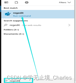 点开开始菜单,在搜索栏中输入regedit,如图3: