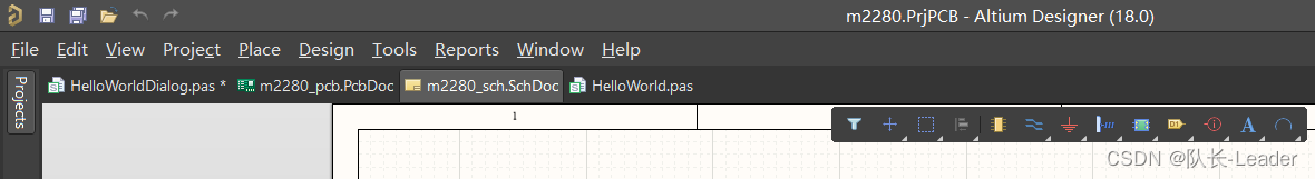 发现在原理图或PCB中,并没有显示该工具栏,可以使用刚才的方法,给原理图或PCB也添加一个脚本快捷按钮。
