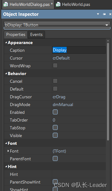 在右下角打开Object Inspector,选择控件,就会显示该控件的一些设置参数。