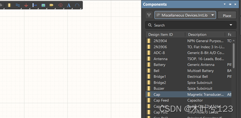 5.放置器件:在库中选择相关元器件和芯片(直接拖动到空白区域,右键撤销)