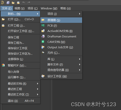 2.在该工程下新建一个原理图(建好project后直接再新建的原理图一般就在该工程下)
