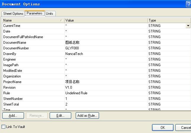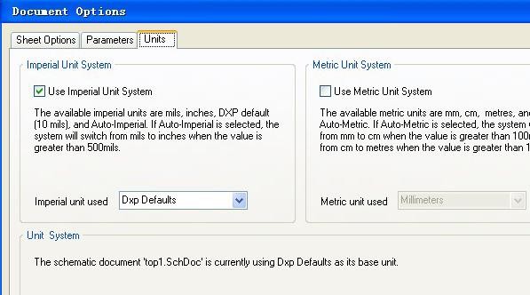 对原理图的编辑文件的设置,打开原理图右击找打 Docment Options 显示如下