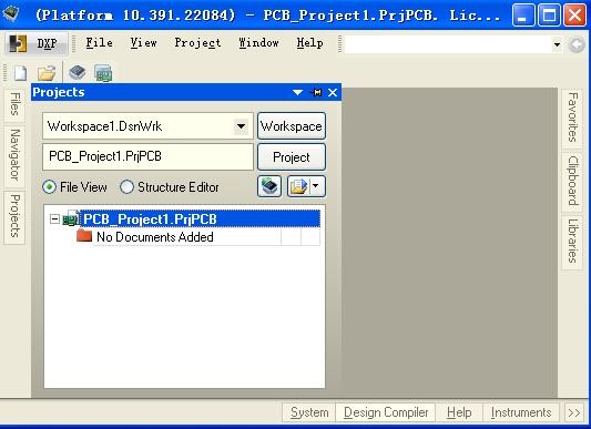 2.3.2 单击菜单【File】→ 【New】→ 【Project】→ 【PCB Project】, 默认为 PCB Project1. PrjPCB,完成后如下图 2.3 所示。