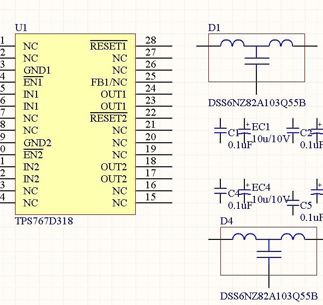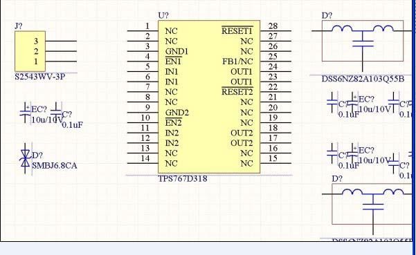 接着对于放置后的元件进行排序,在上一步我们设置完原理图的工作环境后,从库中选取需要的元件,设计电路,但这些元件默认没有标号,整体以问号的格式显示在原理图中。如下为一个电压转换电路,是一种常用的 5V 转 3.3 和 1.8 的电路。