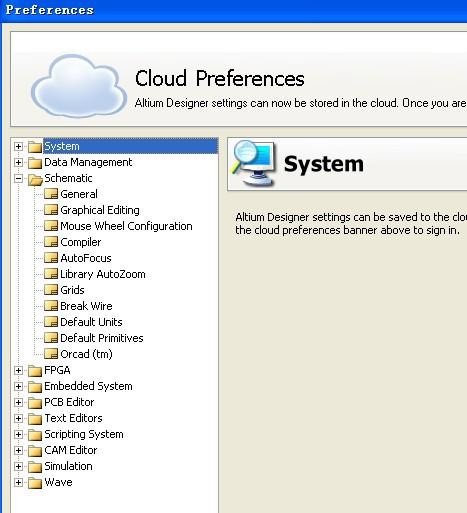 关于原理图中的设置,这里只介绍常用的【DXP】→ 【Preferences】