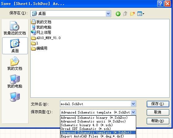 选择保存类型“Advanced Schematic template(*.SchDot)”并将此命名为 model,如图 3.1。