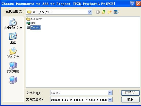添加已经建立的原理图文件和 PCB 文件到指定的项目中, 单击菜单【Project】→ 【 Add Existing to Project 】, 弹出如图 2.4。