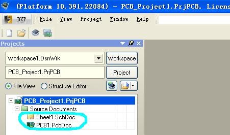 鼠标双击点击原理图后,便添加到指定的项目中,同样的方法,我们可将所创建的 PCB 文 件添加到指定的项目中。