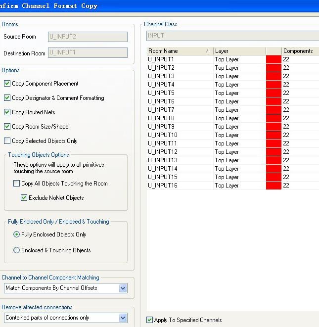 在【Design】→ 【Rooms】→ 【Copy room formats】,鼠标点击布线完成的 room,再点击需要刷的 room,弹出下图。