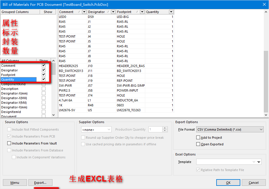A、单器件:选中一个器件,按F11弹出