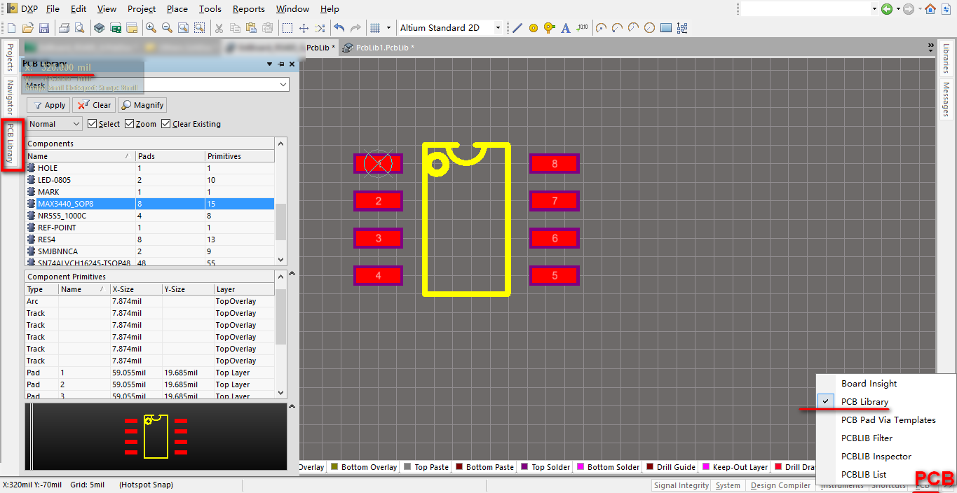 使用PCB->>PCB library查看PCB上的所有元件封装