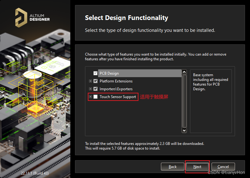 3、默认即可,其中 Touch Sensor Support 主要是用于 触摸屏 ,然后点击 Next