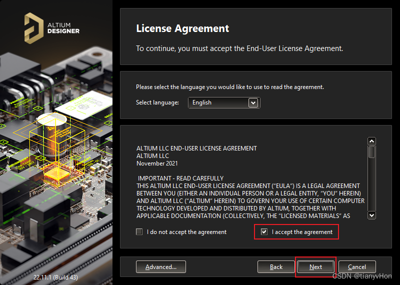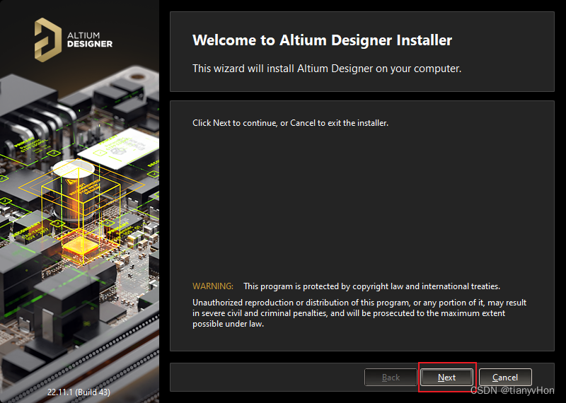 1、开始安装 Altium Designer,点击 Next