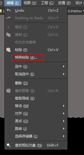 选中整个PCB板,选择复制,中心点选择板子左下角位置,切换到另一个 PCB文件 中选择编辑->特殊粘贴
