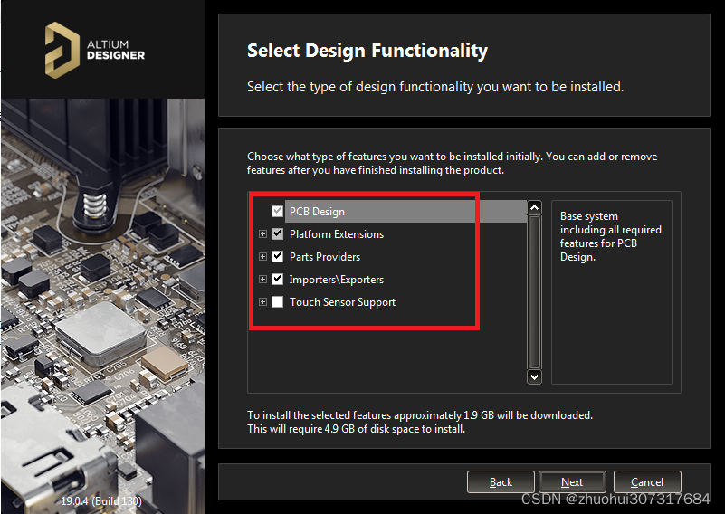安装的部件,默认的就行。