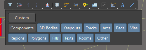故障:在PCB界面不知道是由于什么原因导致在PCB界面中无法选择元器件,走线和过孔等都可以选择