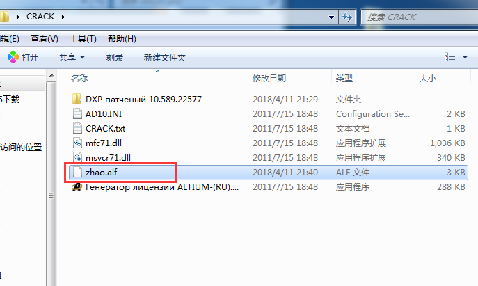 打开CRACK文件夹,破解需要用到的文件如下所示