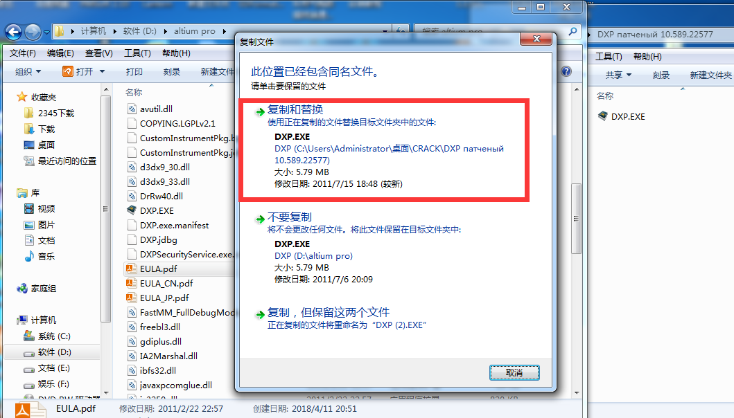 将第一个文件夹下的DXP 文件复制 到Altium安装路径当中。会发现这个路径下也有DXP文件,替换即可。
