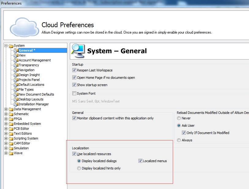 点软件左上角的DXP-->Preferences选项卡,修改Localizations。