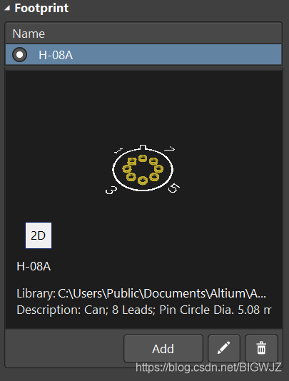 下面要做的比较重要,即修改芯片的封装。在properties下向下滑动窗口,可以看到footprint选项,默认为H-08封装,点击Add旁边图形为一支笔的按钮( edit 按钮),来编辑封装信息。