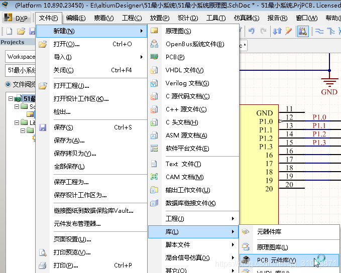1、新建-库-PCB库。这个PCB库的作用是管理本工程中的所有PCN封装。
