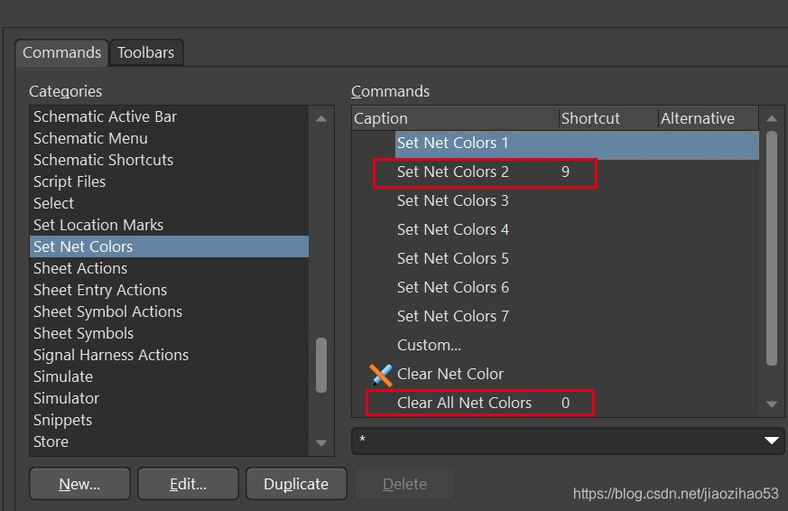 在上图中“set net colors”处,将相应的操作的快捷键分别设为“9”和“0”,即可实现类似于virtuoso的便捷操作。