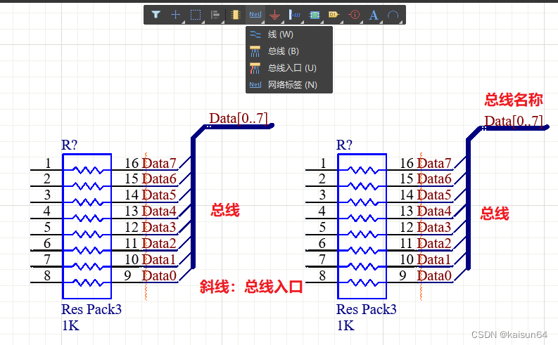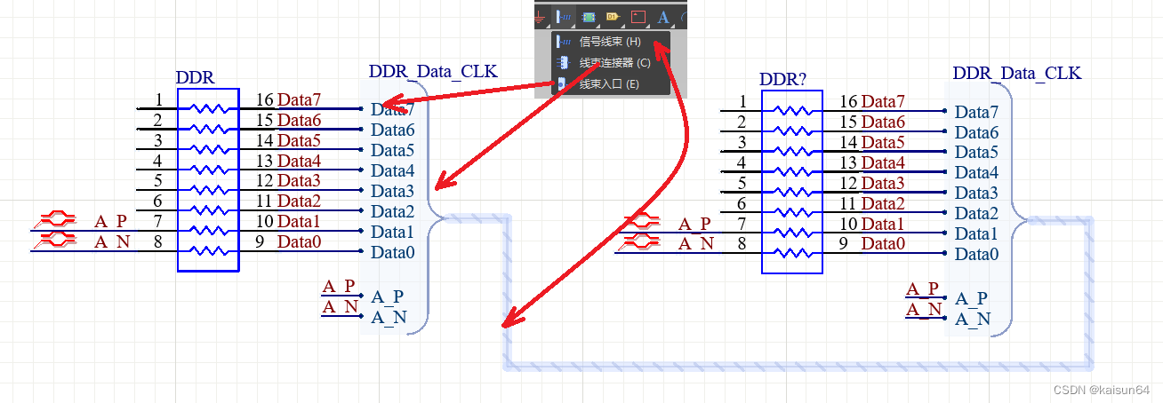 信号线束的功能类似于总线,操作步骤也类似,但是功能比信号总线更强大,可以放置不同属性的线束。