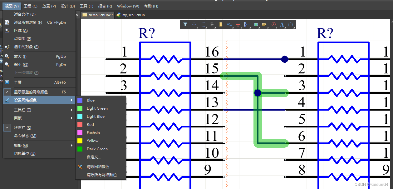 默认情况下,同一个工程的多个原理图中使用同一个网络标签的网络是连接在一起的。