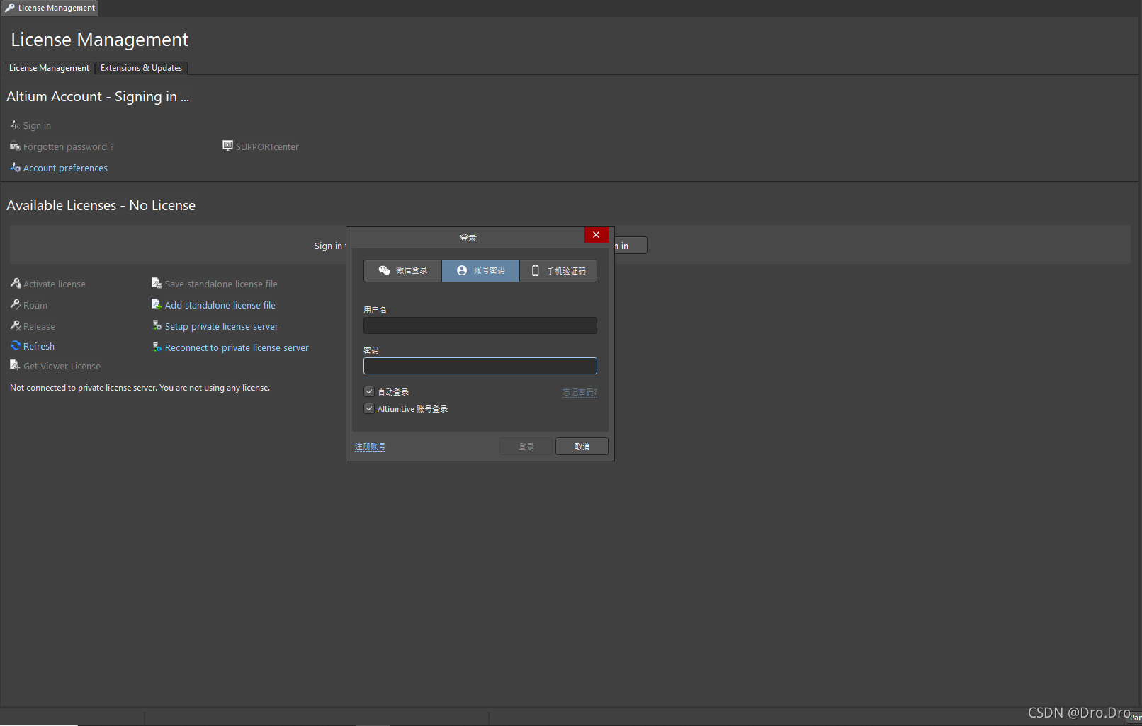 选择Sign in,然后选择账号密码,把下面两个勾都打上,输入自己的AltiumLive账号密码,别输入DigiPCBA账号密码了。如下图所示