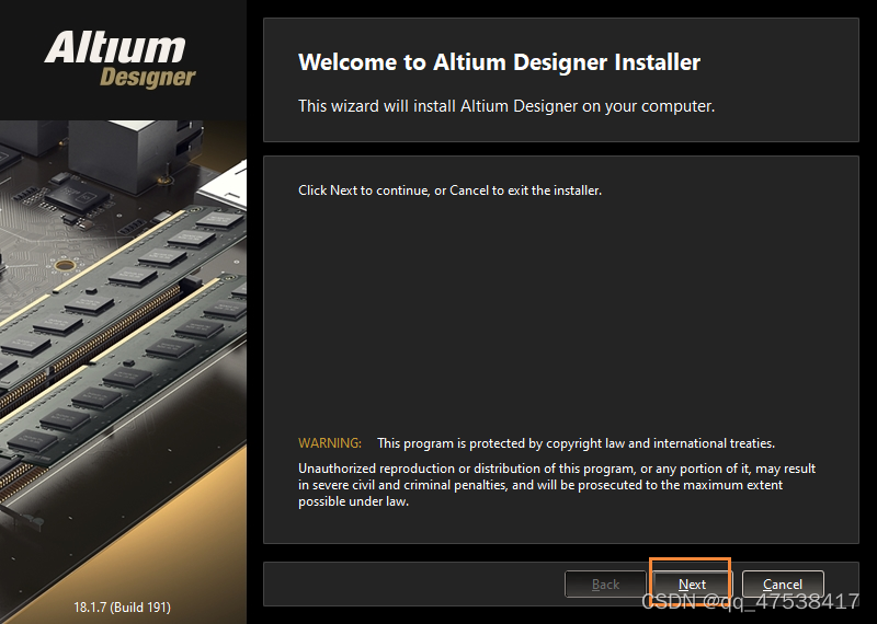 双击打开 AltiumDesigner18Setup.exe 文件,开始安装