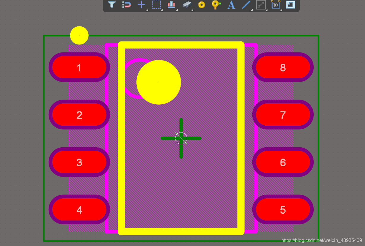 上图为某个IC的封装。同理,要绘制单个的器件封装,先要建一个PCB库。画器件封装,我目前所知有两种方法