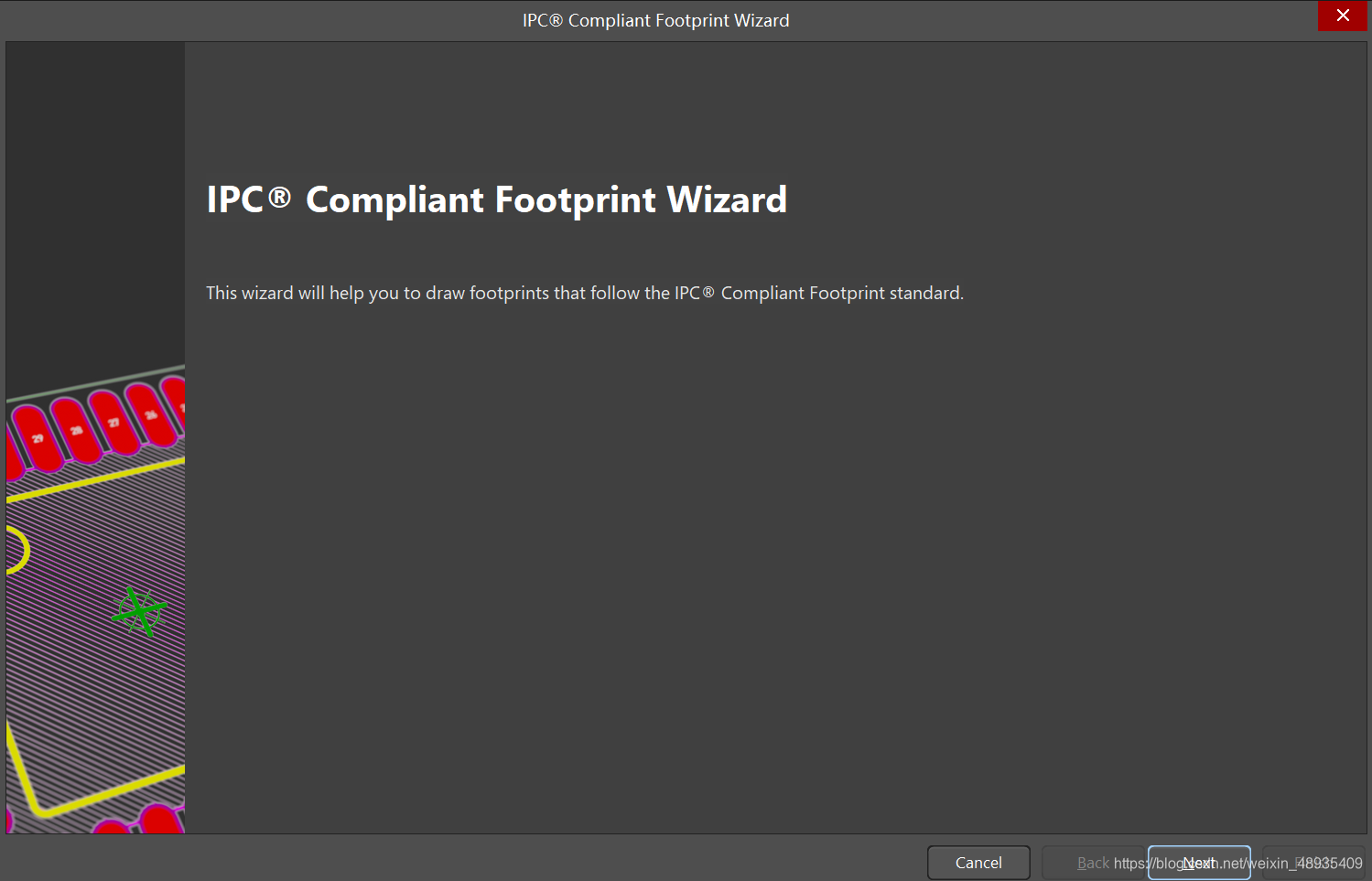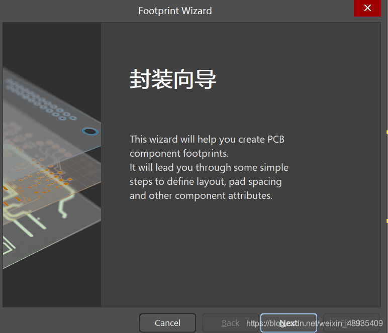 还有一种是通过工具栏中的向导(Footprint Wizard)完成绘制。向导又分为元器件向导和IPC向导,元器件向导主要绘制元器件,IPC向导主要绘制IC