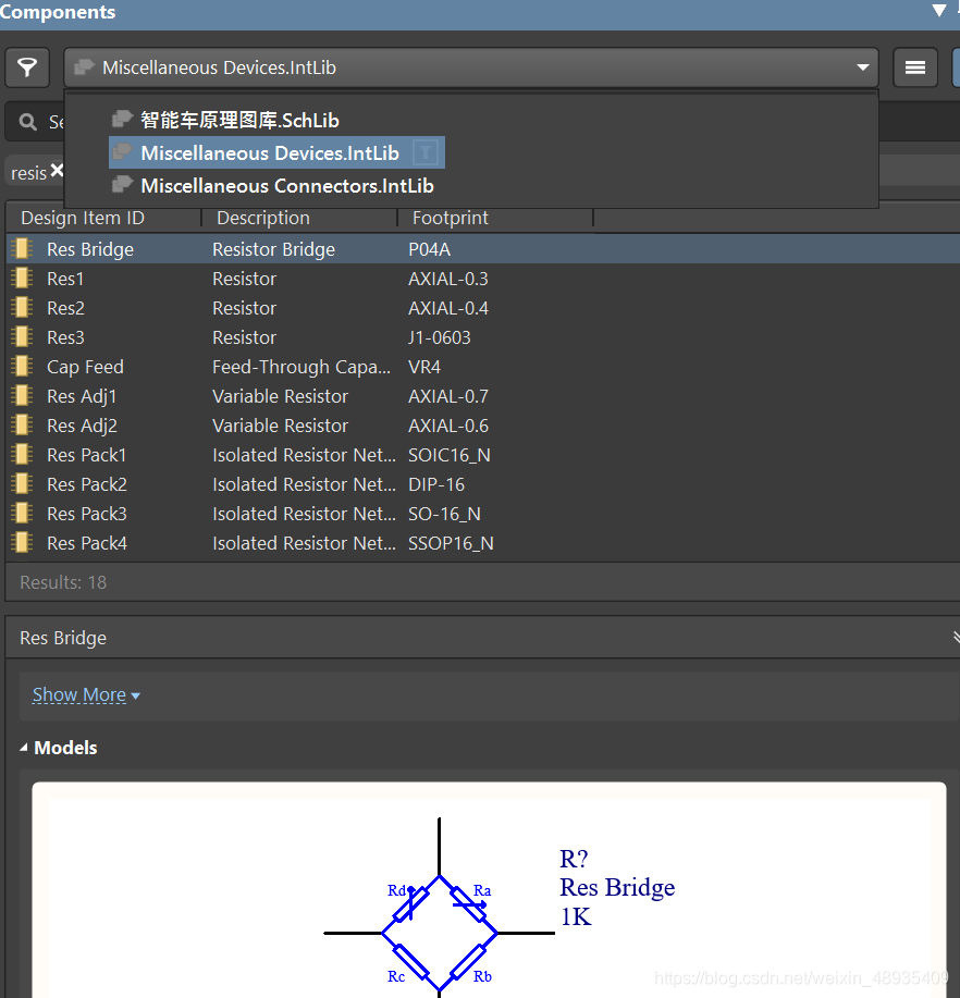 可以看到除了自己新建的一个原理图库外,还有两个自带的库,其中一个是啥都有的杂库,另一个是排针连接器的库。也许用户自己还能导入其他的库,但那是后话了,目前为止元件还够用。