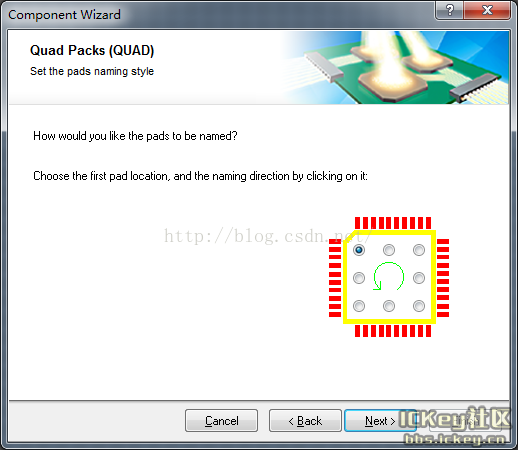 上面可以选择画很多种类的封装,但没有LQFP的封装,我们选一个QUAD的封装进行演示。