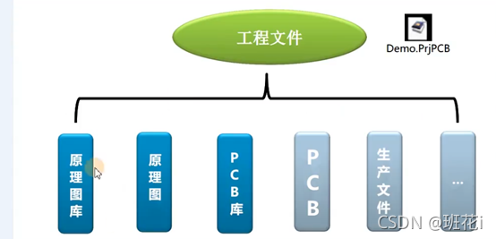 主体是由四部分组成的,原理图库、原理图、PCB库,PCB。(两两对应)