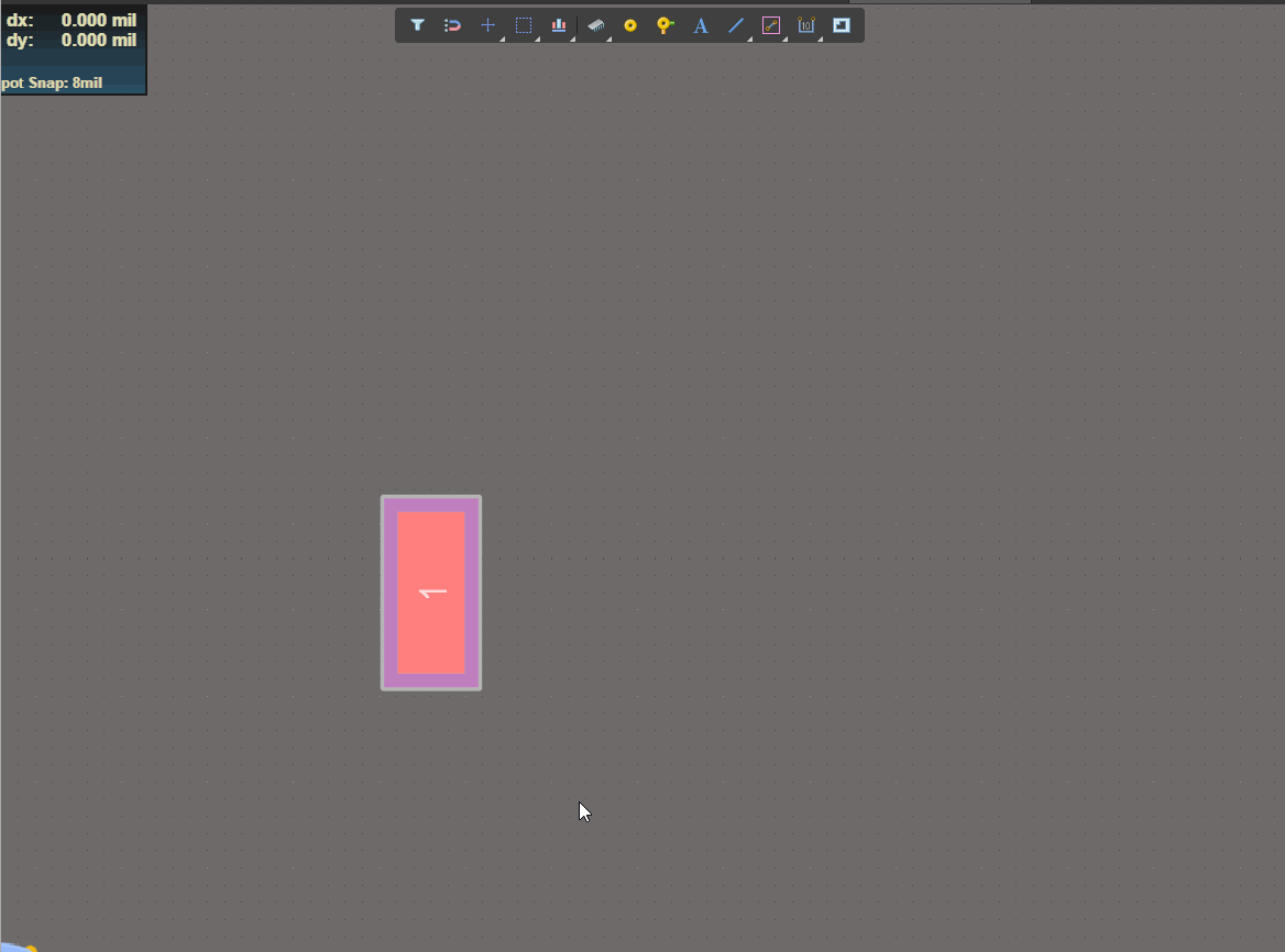 (2)丝印的另一种绘制方法,在红色图层绘制四条小边界,在黄色图层绘制丝印,完成后返回红色图层,按快捷键Shift+S,后选中四条小边界删除后,再按两次切换回来