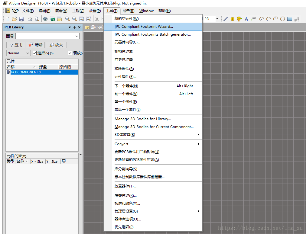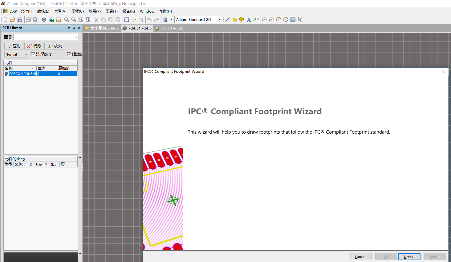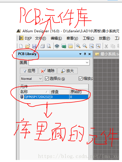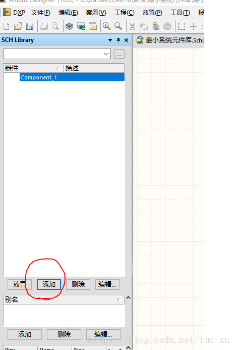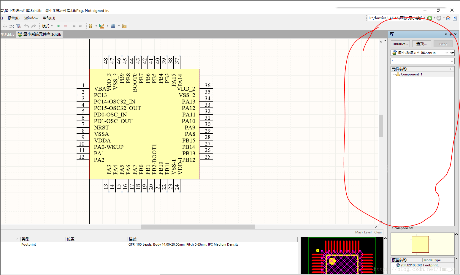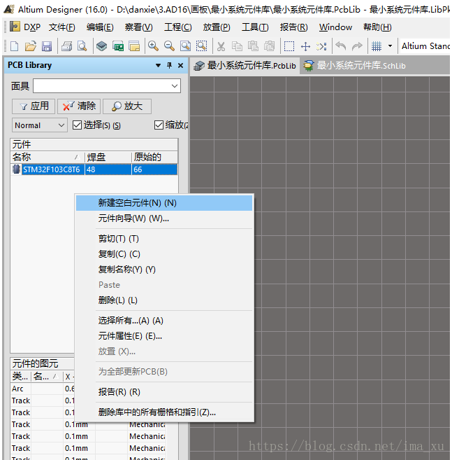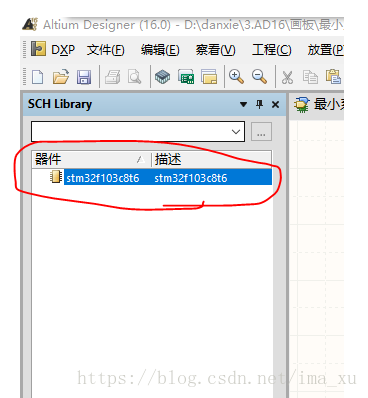 然后双击打开“最小系统元件库。SchLib”,放置一个矩形(即为芯片)