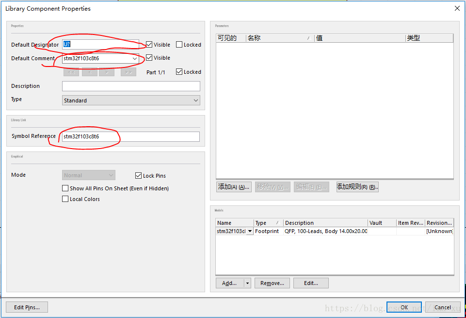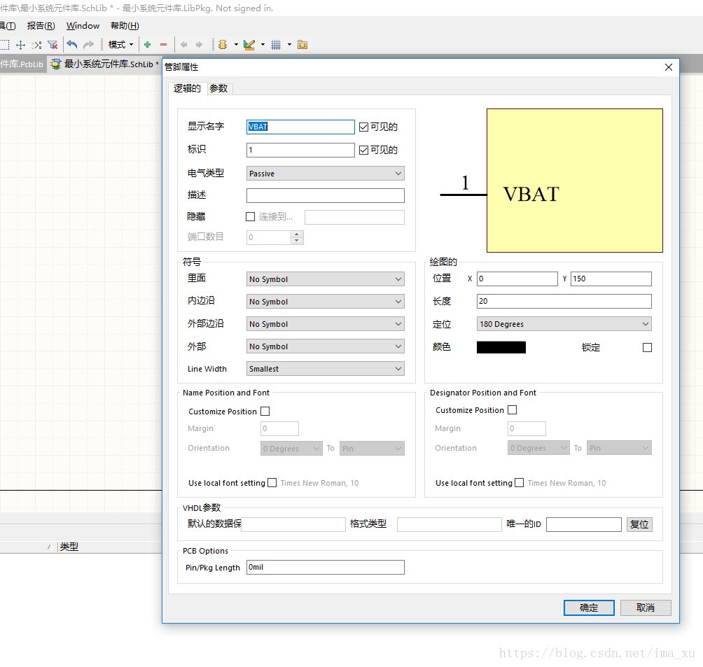 添加引脚(按tab可设置引脚长度,可隐藏标识和名称)