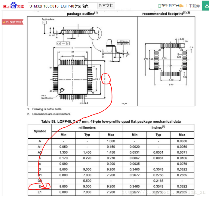 百度xxx(如stm32c8t6)封装,即可找到相应的封装参数