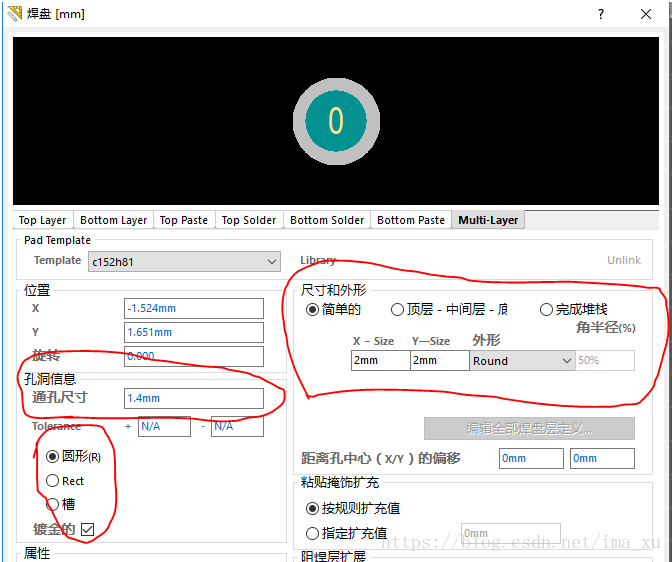 按Tab修改通孔尺寸外形和焊盘大小外型,并放置(放置后双击可以修改焊盘的坐标)