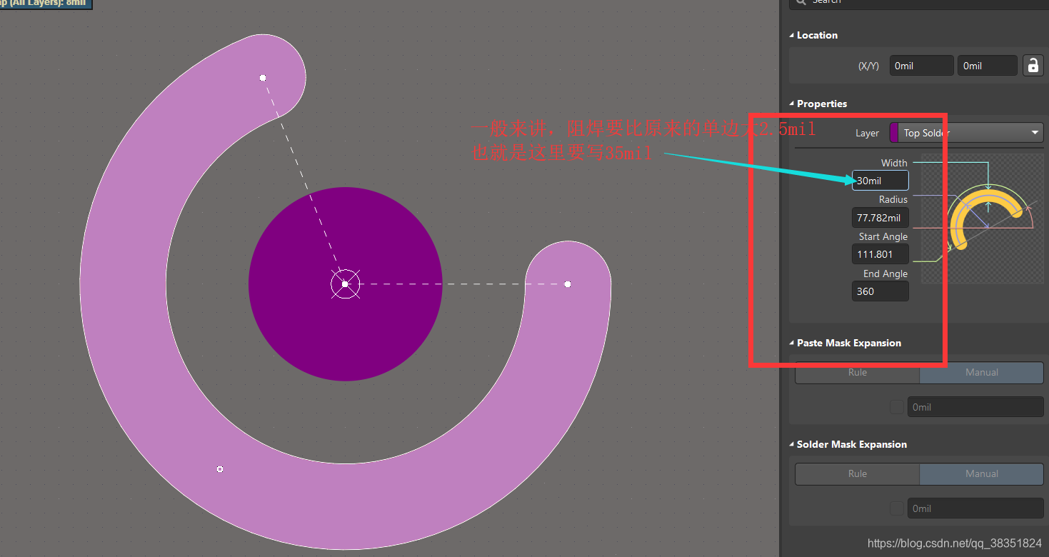 Bottom Paste 底层锡膏层:定义PCB不可焊接的层,以保护铜箔不被氧化上锡等, 即平时在PCB板上刷的阻焊漆 (默认不选取任何区域为整个平面刷油,选取区域不刷,负片输出)