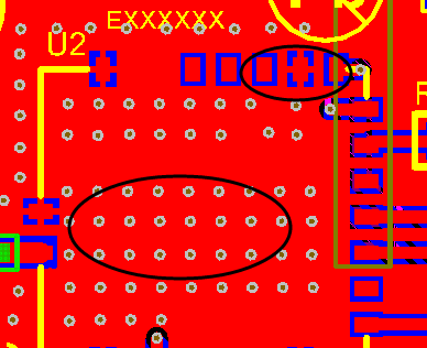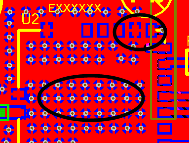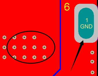 仅仅这么设置后,你会发现除了接地引脚使用十字焊盘接地之外,对于过孔也是十字接地处理,如下——